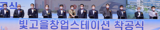 광주역 일대 도시재생 뉴딜사업의 핵심인 빛고을 창업스테이션이 28일 광주역 주차장 부지 내 사업대상지에서 착공식을 가졌다.