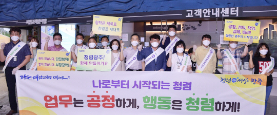 광주광역시가 3일 오전 시청 1층 로비에서 하계휴가 기간 공직자 부패행위를 예방하고 건전하고 깨끗한 공직분위기를 조성하기 위해 ‘청렴 캠페인’을 펼쳤다.