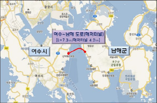 여수와 남해는 본래 지형상 좁은 바닷길이 사이에 있어 1시간 20분 이상 우회하는 거리로, 이번 해저터널이 개통되면 5분 내외의 직선 단거리로 연결되므로 영호남 30분대 공동생활권이 가능해진다.