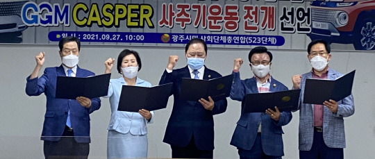 한편, 광주 시민사회단체총연합(523단체)은 이날 ‘캐스퍼’ 사주기 운동에 돌입했다. 이들 단체는 성명을 통해 “광주시민과 함께 지역생산 제품인 ‘캐스퍼’ 사주기 운동을 추진하고, 상생형지역일자리 성공을 위해 판매운동에 심혈을 기울임은 물론 적극적으로 애정과 관심을 갖고 활동할 것을 선언한다”고 밝혔다. /노정훈 기자 hun7334@namdonews.com