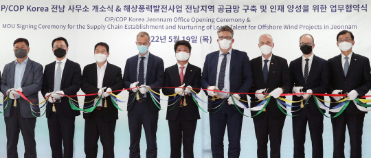 전라남도와 CIP는 19일 전남풍력산업협회, 해상풍력전력기자재협회, 현대스틸산업, 목포신항만운영(주), 대한조선(주), 목포대학교, 목포해양대학교, 녹색에너지연구원과 ‘전남지역 해상풍력 공급망 구축 및 인재 양성을 위한 업무협약’을 체결했다.