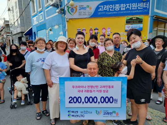 종합건축자재기업 벽산(대표 김성식)은 최근 사단법인 고려인마을(대표 신조야)을 통해 우크라이나 전쟁으로 고통받고 있는 고려인 동포들의 귀환을 위한 후원금을 전달했다고 23일 밝혔다.