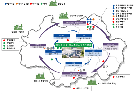 이에 따라 광주테크노파크는 2026년까지 5년간 국비 50억 원과 지방비 75억 원 등 총 125억 원을 투입해 지역 에너지 기업의 이차전지 배터리 팩·모듈 핵심기술 경쟁력을 강화하기 위해 시험평가센터를 구축한다. 시험평가센터는 광주 남구 도시첨단산업단지내 9천256㎡ 부지에 지상 2층 규모로 팩 시험용 충방전기·챔버, 고출력 모듈 성능평가 장비 등을 설치한다. 특히 전기차용 배터리 팩·모듈 설계, 제품개발, 기술지도, 인증지원, 인력양성 등 종합지원 플랫폼도 구축해 차세대 배터리산업 활성화에 나선다.