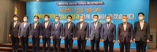 전남도는 13일 더불어민주당 전남도당과 예산정책협의회를 갖고 지역 현안과 내년도 국비 확보 방안을 논의했다. 이 자리에는 김 지사와 더불어민주당 전남도당 김승남 위원장, 주철현·김회재·소병철·신정훈·이개호·윤재갑·서삼석 국회의원(지역구 순)과 김갑봉 도당 사무처장 등이 함께했다.