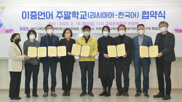 함박마을이 클릴에 관심을 갖게 된 이유도 여기에 있다. 너머인천고려인문화원은 지난 2월 인천시교육청(마을교육지원단),대한고려인협회, 선학중학교, 연수구청 평생교육과와 이중언어교육을 위한 주말학교 운영 협약(MOU)을 체결했다. 이 협약으로 대한고려인협회는 러시아어와 한국어를 동시에 사용하는 이중언어 주말학교를 3월부터 함박마을 교육문화공간 마을엔에서 시범 운영중이다.