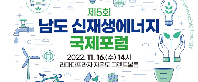 전라남도가 주최하고 남도일보, 녹색에너지연구원이 주관하는 제5회 남도 신재생에너지 국제포럼은 ‘신재생에너지 대전환, 전남 에너지산업 발전 방향’을 주제로 16일 오후 2시 전남 신안군 자은면 라마다프라자 자은도 그랜드볼룸홀에서 개최된다.