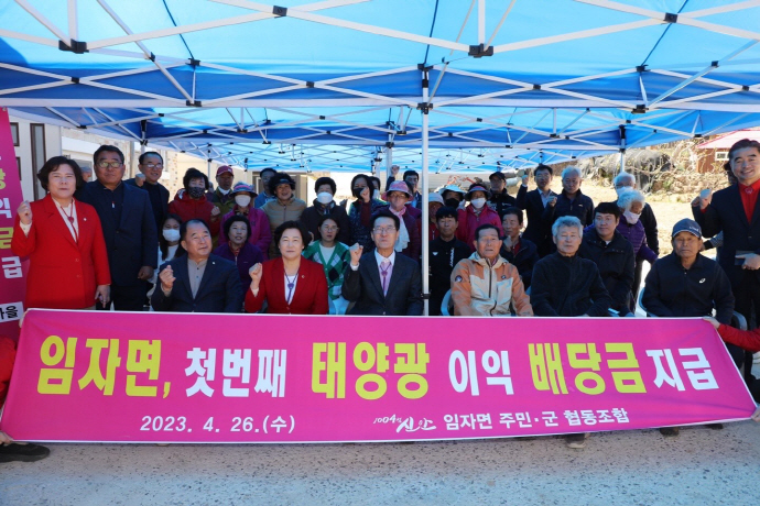 전남 신안군 임자면 주민 이명진(62)씨는 27일 태양광발전소의 수익금 배당을 받은 게 믿기지 않는다는 표정이다. 이씨는 발전소 설립과정에서 주민이면 누구나 참여할 수 있는 ‘임자도 신재생에너지 주민·군 협동조합’에 들었을 뿐이다. 그가 배당금을 받기까지 실제 들어간 돈은 조합 가입비 1만 원이 전부다. 주민 조합원은 2천723명으로 임자면 전체주민의 87%가 가입했다. 이씨는 “처음에 적극적으로 반대했던 주민들도 이익공유제로 다 동참했다”며 “외지 요양원서 생활하거나 아예 관심이 없는 몇몇 분을 빼고 사실상 전 주민이 참여했다”고 말했다. 이들 조합원은 발전소 전력판매대금이 입금되는 날짜에 맞춰 분기별로 연 4회 배당금을 받는다. 집과 태양광 발전소 거리에 따라 1인당 10만∼30만원씩 받는다. 태양광 발전소와 500m이내에 위치해 1인당 30만원씩 받는 신명마을 주민 양모씨 집은 가구원이 8명으로 연간 900만원 가량 받게 된다.