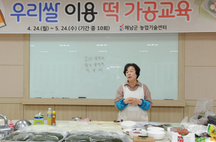 남도일보 취재팀이 방문한 지난 4일 윤 회장은 해남군농업기술센터에서 회원들을 대상으로 떡만들기 강의를 위해 준비가 한창이었다.
