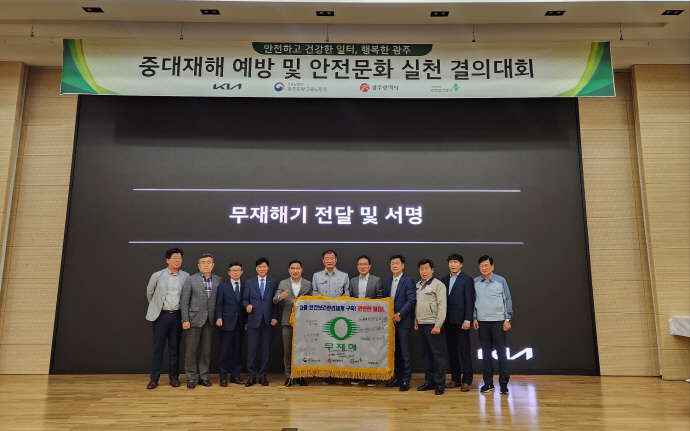 광주지역 안전문화 실천추진단(단장 양정열 광주지방고용노동청장)은 14일 기아 오토랜드(AutoLand) 광주사업장에서 중대재해 예방 및 안전문화 실천을 다짐하는 결의대회를 가졌다고 밝혔다.