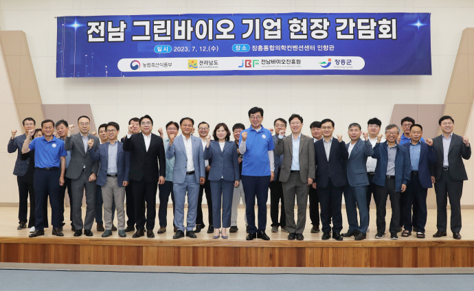 전남도는 지난 12일 농식품부, 장흥군과 함께 그린바이오 기업 현장 간담회를 장흥 통합의학컨벤션센터에서 개최했다.