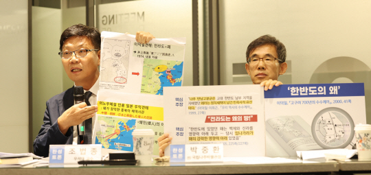 전문가 패널들은 각자의 입장을 설명하기 위해 역사 해석의 근간이 된 고대 지도 등이 담긴 팻말을 준비해 설명을 이어갔다. 각자 토론시간이 1분으로 제한돼 있음에도 각자 의견을 발표할 때마다 시간 연장 요구가 계속됐다.