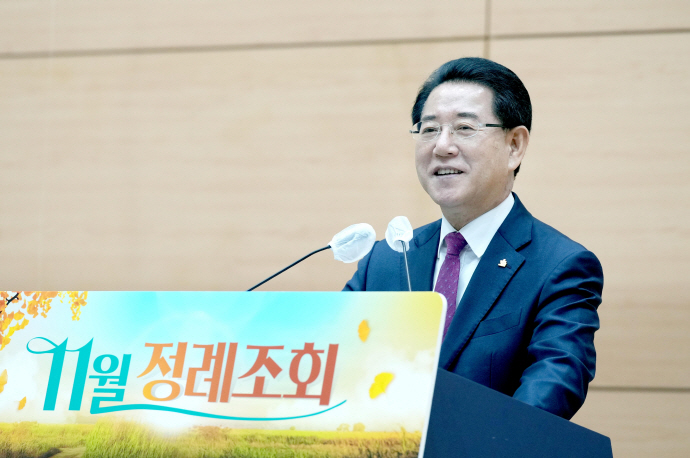 김 지사는 이날 오전 도청 왕인실에서 열린 정례조회를 통해 도민 호평을 받으며 성공적으로 치르거나 진행되는 행사 및 성과 등을 일일이 열거하며 “도청 가족의 땀과 눈물, 헌신으로 일해준 성과”라고 치하했다.