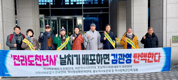 역사바로세우기전북연대, 바른역사시민연대, 호남역사바로세우기국민연대, 역사정상화전국연대, 가야사바로잡기전국연대, 중도역사보존전국연대,(사)대한사랑,(사)미래로가는바른역사 등 역사시민단체 대표단 일동