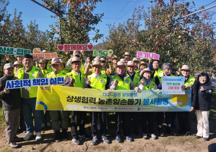 이번 봉사활동은 양 기관이 지난 3월 광주에서 체결한 ‘달빛동맹 사회공헌활동 상호협력 업무협약’의 첫 실천 사례다. 가을 수확기를 맞아 대구도시개발공사의 자매결연지인 군위군 부계면 사과 농가의 일손 부족 해소를 위해 기획됐다.