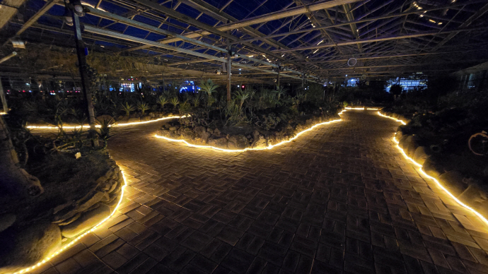 식물전시관 4곳은 각 전시관별로 다양한 테마의 빛과 어우러지는 신비로운 분위기를 연출했다. 다육식물관은 ‘LED존’으로 식물들을 보는 눈높이에 맞춰 동선에 1천200m 길이의 LED를, 자연생태관은 ‘서치라이트존’으로 중앙의 석가산(石假山)에 이목을 집중시켜 서치라이트 27개를 설치했다.