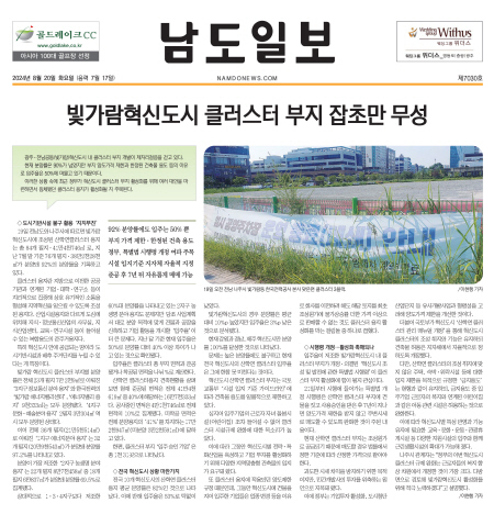 지난 8월 남도일보에 게재된 빛가람혁신도시 클러스터 부지 개발 ‘하세월’ 기사는 빛가람혁신도시 클러스터 부지 개발에 대한 전반적인 내용이 담겨있다.