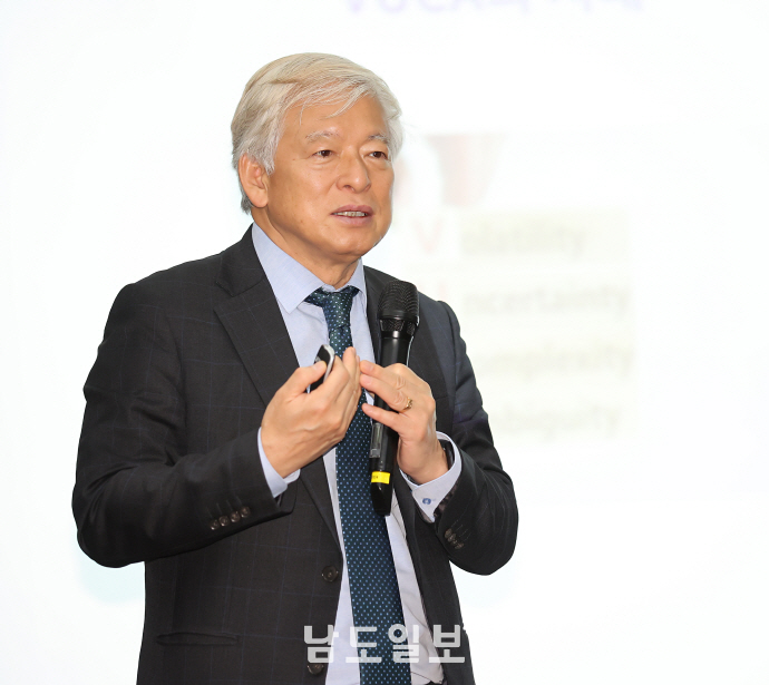 남도일보 제11기 K포럼 네 번째 강연자로 나선 염재호 태재대학교 총장은 "미래 사회를 대비하기 위해 장기적 전략을 수립할 수 있는 창조적 리더십이 중요하다"고 강조했다.