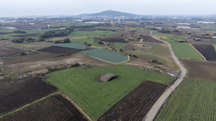 새벽안개가 서서히 걷히는 상공 400피트에서 내려다본 알뜨르의 풍경은 충격적이었다. 들판 한가운데, 일제강점기 당시 일본군이 사용했던 비행기 격납고 20여 기가 파도처럼 굳어진 채 덩그러니 남아있다. 시간이 멈춘 듯한 그곳은 역사의 무게를 고스란히 품고 있다.