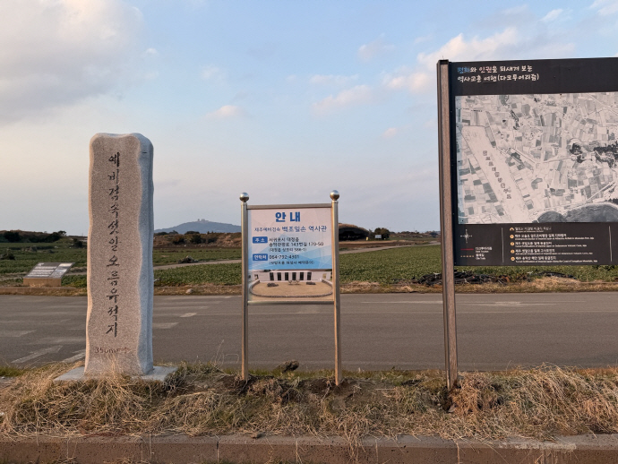 비행장과 주변 풍경에 남은 과거의 흔적들. 그것이야말로 결코 잊어서는 안 될 제주의 진짜 속살이다. 남아있는 격납고들은 마치 흐려져 가는 기억처럼 보였다. 하지만 그사이에 펼쳐진 농경지를 보며, 과거의 아픔이 현재와 어떻게 연결되어 있는지 확인할 수 있었다.