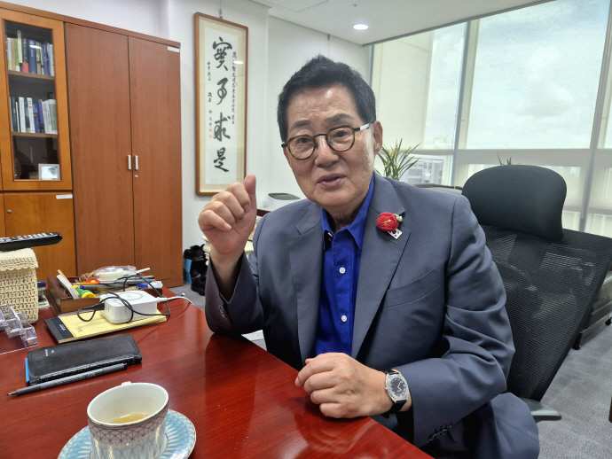 5선 중진 더불어민주당 박지원 국회의원(전남 해남·완도·진도)은 22대 국회에서 무려 92.35%라는 최고 득표율로 당선됐다. 그는 당선 이후 매주 단 한 번도 빠지지 않고 ‘금귀월래’를 실천하며 지역민과의 끈끈한 소통을 이어왔다. 김대중 전 대통령(DJ)의 비서실장으로서 쌓은 풍부한 정치 경험을 바탕으로 ‘국민과 함께하는 정치’를 강조하는 그는, 개헌과 검찰개혁, 5·18 피해자 배상, 민주당과 조국혁신당 합당 문제 등 굵직한 현안에 대해 명확하고 흔들림 없는 소신을 밝혔다. 박 의원은 19일 남도일보와의 인터뷰에서 "DJ가 가르쳐준 정치를 열심히 실천하며, 이재명 정부와 함께 내란 종식과 3대 개혁 완수를 반드시 이뤄내겠다"며 포부를 전했다.