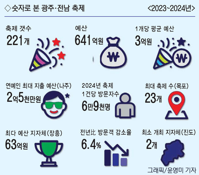 전남 지역 축제들이 개최 건수와 예산은 매년 큰 폭으로 증가하지만, 관람객 유입에는 한계를 보였다.