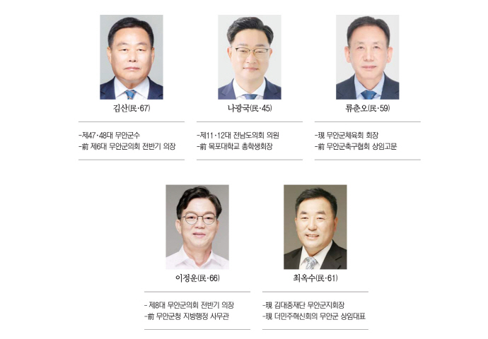 내년 6·3 지방선거를 앞두고 차기 전남 무안군수 후보 지지도 조사에서 현역인 김산 군수가 선두를 달리는 것으로 나타났다. 2위 그룹이 추격에 나선 가운데 현직 프리미엄을 등에 업은 김 군수의 ‘대세론’을 예단하기 이르다는 관측이 나온다. 30%에 육박하는 부동층이 최대 변수로 남아 있어서다. 남은 기간 이들의 표심을 누가 사로잡느냐가 선거의 향방을 가를 전망이다.