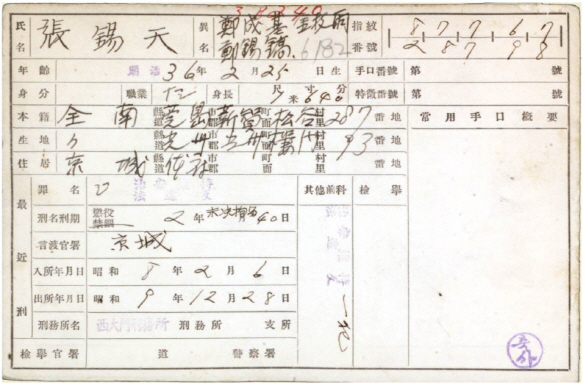 이곳에 구금된 독립군, 항일투사(사상범) 등은 사진이 부착된 수형카드를 남겼다. 수형카드로 본 수형자는 본적 기준으로 4천484명, 거주지로는 4천409명이다. 이들 중 본적 기준으로 전남(광주 포함)출신은 159명, 거주 기준으로는 85명으로 파악된다. (박경옥 저서 ‘서대문형무소’참조) 광주전남 출신 항일지사들은 체포 후 재판과정에서 복심법원(2심법원)이 대구에 있었기 때문에 대부분 대구감옥에 수감됐다. 하지만 서울, 경기지역에서 활동했던 상당수 지역 출신들은 서대문형무소에 구금된 것으로 보인다.