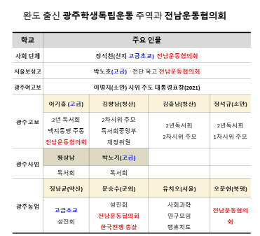 1926년 성진회에서 1929년 독서회 중앙부, 11월 1·2차 시위와 1930년 광주고보 백지동맹까지 완도 라인이 존재했다.