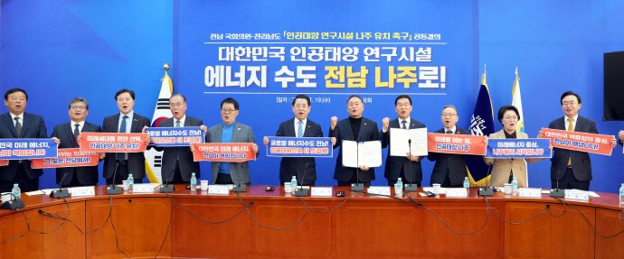 전라남도와 광주·전남 국회의원들이 19일 국회에서 인공태양 연구시설의 전남 나주 유치를 위한 공동 결의를 밝혔다.